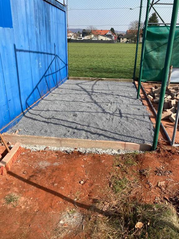 In einigen bereits erfolgten Arbeitseinsätzen konnten im Bereich unter dem Grill Pflastersteine verlegt werden. Nachdem der Bereich um den Grill herum bereits im vergangenen Jahr großflächig gepflastert werden konnte, schließt das Pflastern des Bereiches unter dem Grill nun an.